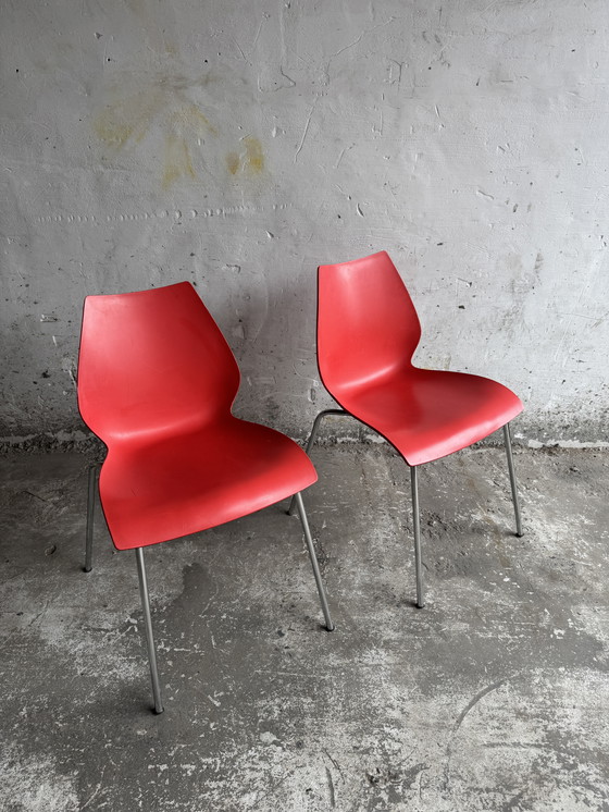 Paire de chaises "Maui" rouges Chaises par Vico Magistretti pour Kartell - Italian Design