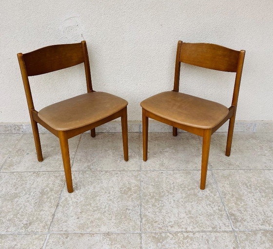 Jolie paire de chaises au design épuré, typique du mobilier des années 1960-1970.