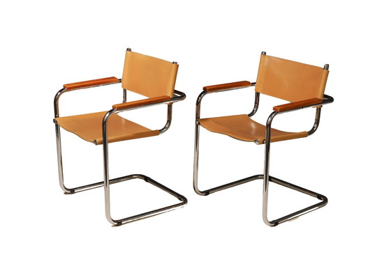 Paire de fauteuils en acier tubulaire en porte-à-faux de Marcel Breuer, années 1970
