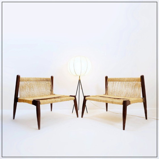 Paire de fauteuils en corde de jute et bois massif