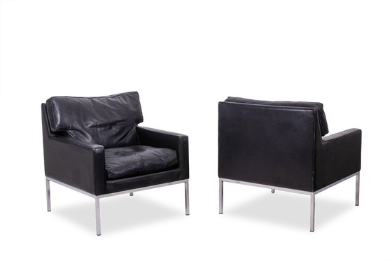 Paire De Fauteuils En Cuir Noir Et Métal Chromé. Années 1970.
