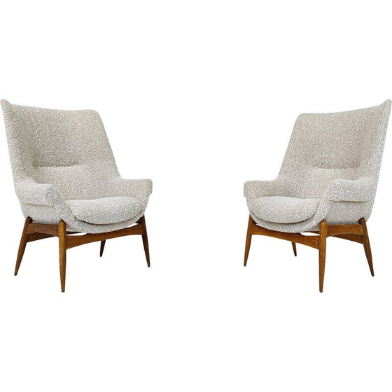 Paire de fauteuils en tissu beige du milieu du siècle par Julia Gaubek, Hongrie années 1950