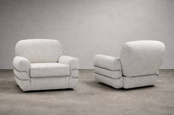 ÉtatExcellentCouleursBeigeMatériauTextile, ChromeQuantité2Hauteur75 cmLargeur105 cmProfondeur100 cmHauteur d'assise38 cm