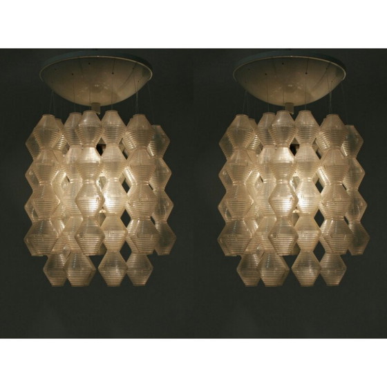 Paire de pendentifs Napoko - années 1970, Tchécoslovaquie. Les deux pendentifs sont en parfait état - Napako (gravé sur une étiquette en fer) - en métal et plastique - chaque lampe a une ampoule.
