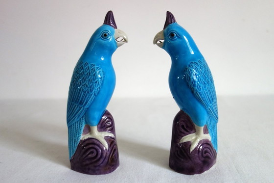 Paire de perroquets émaillés porcelaine chinoise années 60