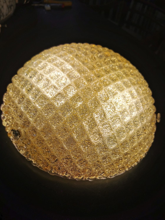 Sublime paire de plafonniers Murano Vintage en verre doré matelassé.