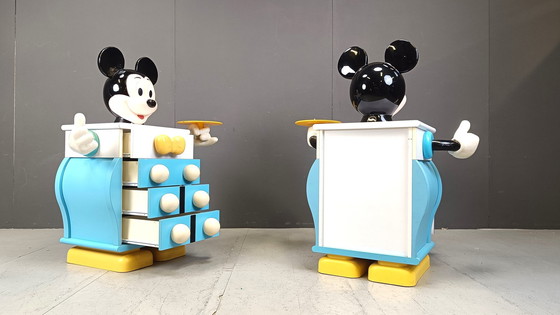 Paire de rares commodes Mickey Mouse de Starform, France, 1988