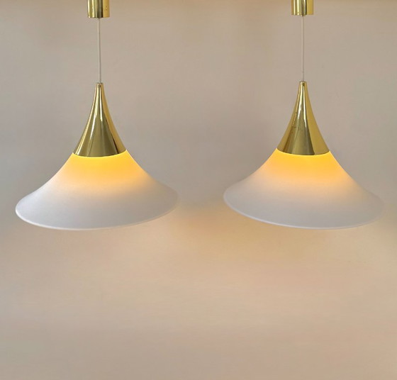 Paire de Suspensions Limburg en Laiton et Opaline, Allemagne, 1970