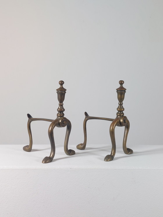 Ce duo exquis de supports à briques réfractaires en laiton vintage, aux formes zoomorphes, apporte une touche d'élégance, de fantaisie et d'histoire à votre cheminée. Leurs courbes artistiques, évoquant des pattes d'animaux, et la patine chaleureuse du laiton créent une impression d'élégance et de raffinement intemporels.