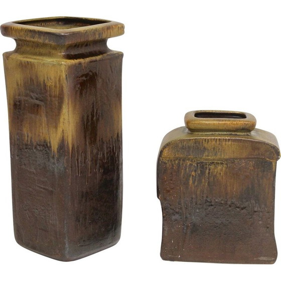 Duo de vases en céramique conçus par Heiner Balzar pour Steuler ceramics, Allemagne de l'Ouest, années 1970. Production de Fat Lava. Le prix comprend les deux vases qui sont en parfait état.Les deux produits sont estampillés.Dimension du petit vase : hauteur 34cm, largeur 27cm, profondeur 13cm.Dimension du grand vase : hauteur 42 cm diamètre 22cm