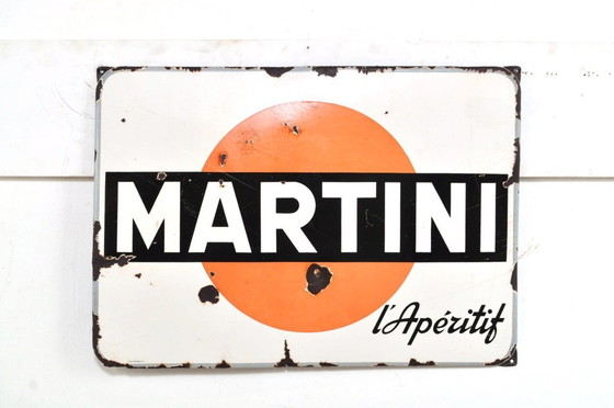 Superbe panneau d'affichage emblématique de Martini, émaillé, France, années 1950.