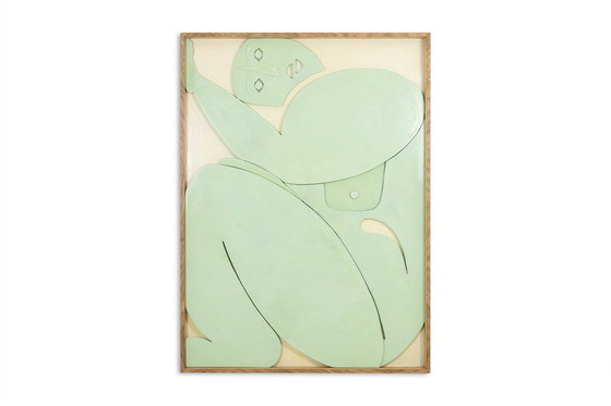 Panneau sculpté représentant un personnage, en laque de couleur céladon, dans son cadre en chêne blond. Travail d’artiste français contemporain. Dimensions : H 150 x L 110 x P 7 cm Référence : LS61863368P