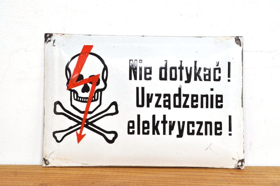 Panneau d'avertissement polonais avec une tête de mort et le texte : « Ne pas toucher ! Appareil électrique ! »