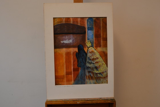 Pavane pour une infante défunte est un morceau de musique pour piano écrit en 1899 par Maurice Ravel, alors âgé de 24 ans. Ce morceau de musique a été visualisé par W. Duyvendak, de Oegstgeest. Acrylique sur papier. Non encadré. En bon état.