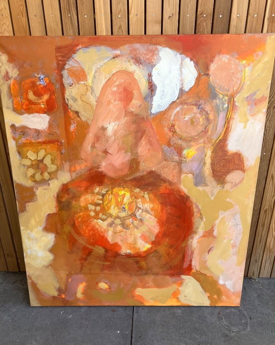 Magnifique peinture abstraite de l'artiste H. van Hemert. Cette œuvre, mesurant 100 x 120 cm, se caractérise par des tons chauds et une composition dynamique. Signée par l'artiste, elle est en excellent état. Un ajout précieux pour tout amateur d'art et une pièce maîtresse pour tout intérieur.