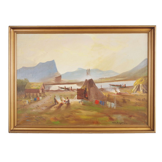 Peinture "The Riverside Camp", design scandinave, 19e siècle, par Vilhelm Oskar Engström