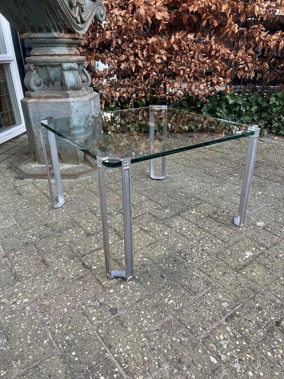 Table basse/table d'appoint vintage Peter Ghyczy. Rare version en aluminium. La table est en bon état. Longueur 70 cm Largeur 70 cm Hauteur 45 cm Belle table, prix €395,00.