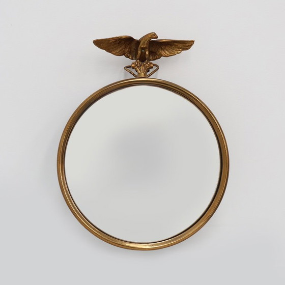 Petit miroir convexe décoratif doré de style Empire avec aigle, France