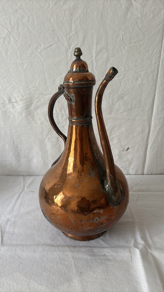 Remontez le temps avec cette exquise cruche en cuivre antique, parfait mélange d'histoire et d'artisanat. Ses tons chauds et riches de cuivre et ses courbes élégantes en font une pièce remarquable pour toute collection ou tout décor.