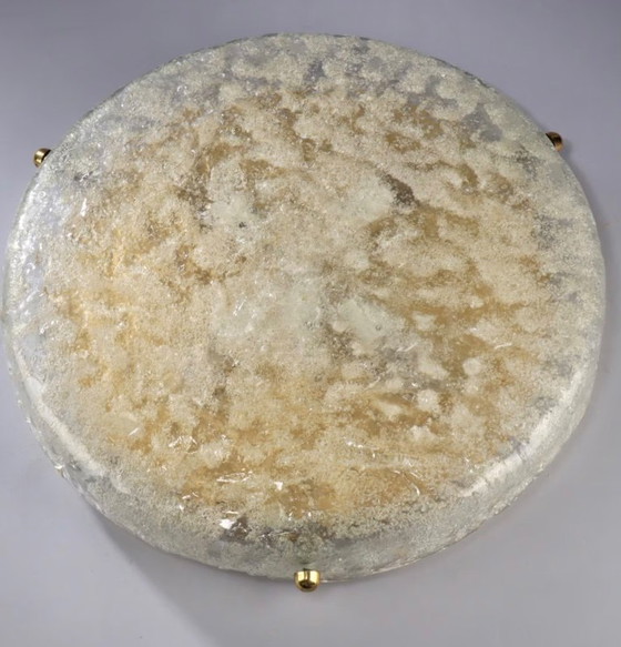 Ce plafonnier Limburg est un superbe exemple de design Mid Century Modern. Il est doté d'un abat-jour en verre joliment texturé de couleur crème, complété par d'élégantes ferrures en laiton. Le plafonnier est conçu pour être monté au plafond, apportant une lumière sophistiquée et ambiante à n'importe quelle pièce. Son design intemporel en fait un complément polyvalent à divers styles d'intérieur.
