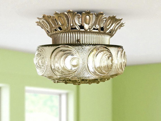 Un abat-jour décoratif en verre est fixé au plafond à l'aide d'une couronne en métal argenté, créant ainsi une atmosphère de luxe dans n'importe quelle pièce.  ;