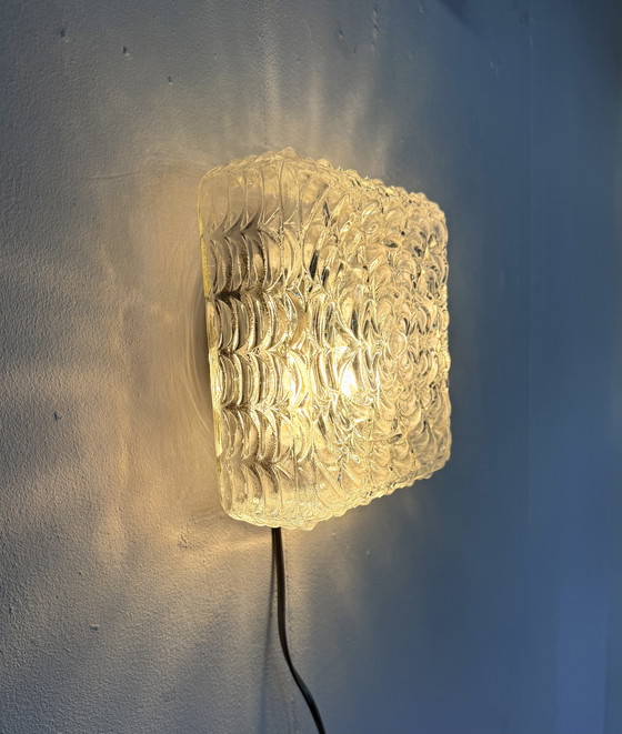 Magnifique plafonnier en verre orné de motifs floraux en relief. Une lampe d'ambiance à la lumière chaude. Un bel objet décoratif à accrocher au mur ou au plafond.