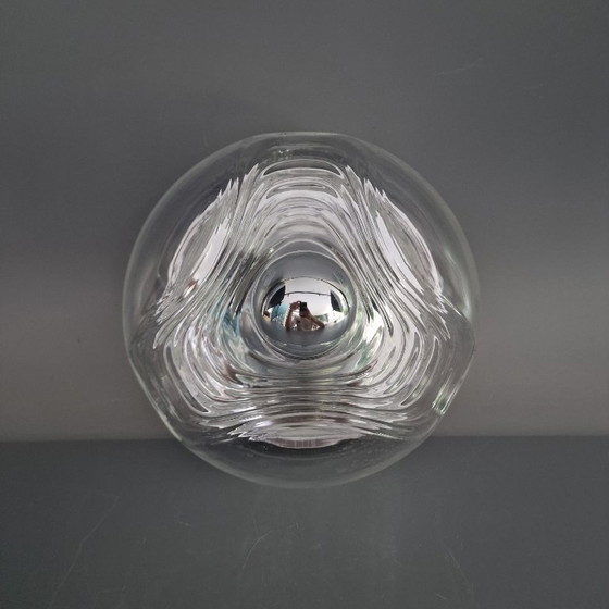 Plafonnier Vintage Space Age - Peill & Putzler "Wave" / "Futura" - 1970 Allemagne - Verre et Métal - Ø 22 cm. Rond.
