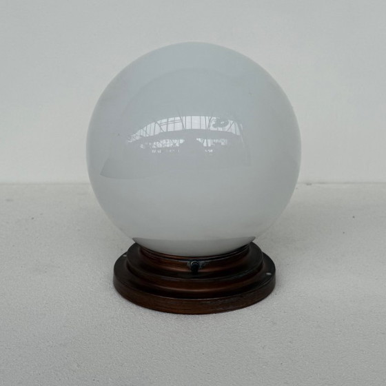 Plafonnier/lampe murale. Abat-jour sphérique en verre avec support en laiton d'origine. Convient pour le mur et le plafond. Aspect chic. De la collection de de Zaak design en advies à Tilburg.