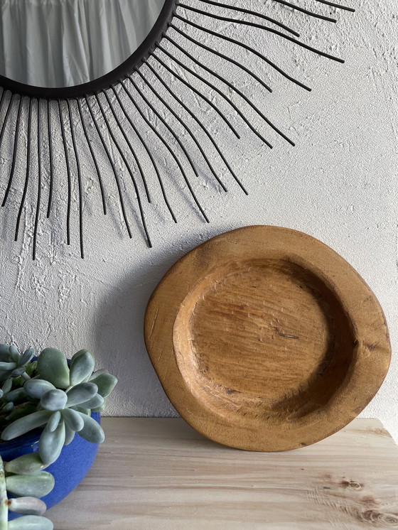 Plat ancien en bois sculpté forme libre. Fabrication artisanale, sculpté à la main.