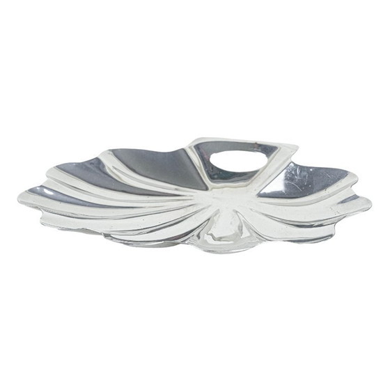 Élégant plat en acier inoxydable en forme de coquillage, il illustre parfaitement le design organique du milieu du XXe siècle. Idéal pour présenter des fruits, des noix ou des confiseries, il peut également servir d'objet de décoration à part entière, dans un style vintage moderne.