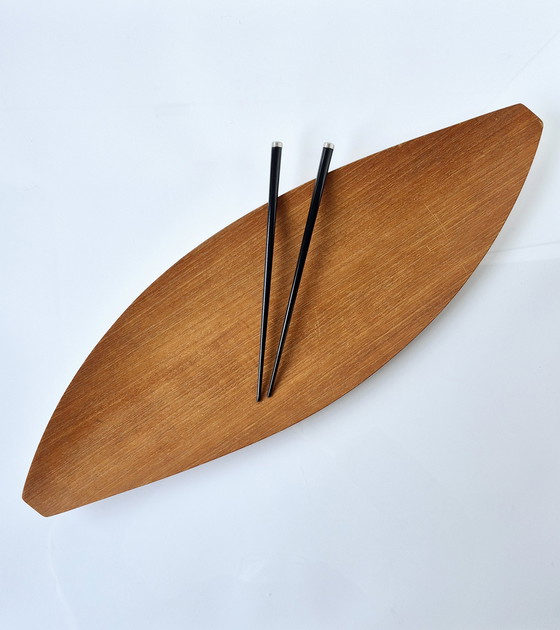 Plateau à sushis en teck, réalisé par Shigemichi Aomine pour le Conseil national des métiers d'art du Japon, vers 1960.