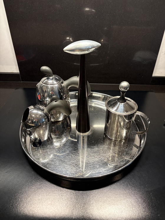 Plateau percolateur Alessi, sucrier et mousseur à lait