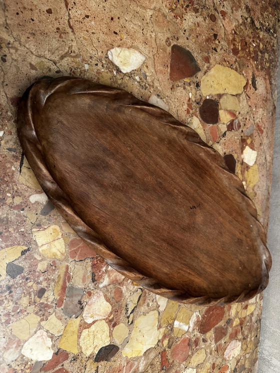 Ce magnifique plateau ovale, attribué au célèbre Stanley Webb Davies de Windermere, témoigne d'un savoir-faire intemporel. Fabriqué en chêne riche, sa teinte brune chaleureuse et son design élégant en font un ajout raffiné à tout décor.