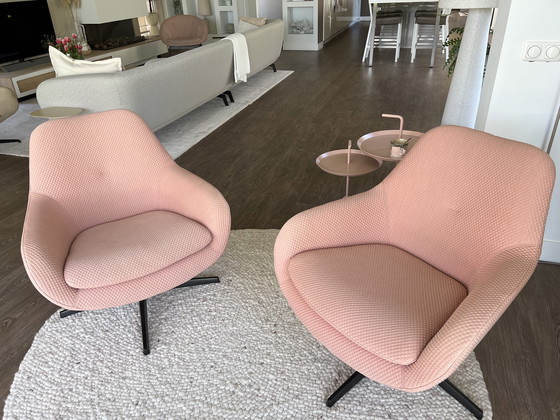 Découvrez les élégants fauteuils pivotants Pode Chat, un parfait mélange de design moderne et de confort. Revêtus d'un tissu 3D sophistiqué, ces fauteuils arborent une ravissante teinte nude/pêche qui apporte une touche chaleureuse et élégante à votre intérieur.