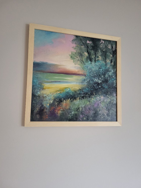 Robert Popczyk est un artiste polonais. Peinture à l'huile sur panneau, signée et encadrée. Format 40 cm/40 cm. Ses peintures sont oniriques et mélancoliques. Certificat joint au dos du tableau.