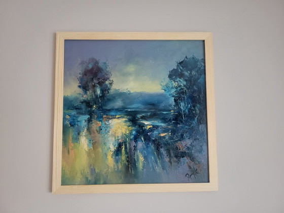 Robert Popczyk est un artiste polonais. Peinture à l'huile sur panneau, signée et encadrée. Format 40 cm/40 cm. Ses peintures sont oniriques et mélancoliques. Certificat joint au dos du tableau.