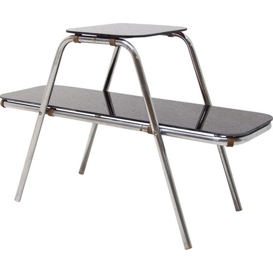 Porte-fleurs fonctionnaliste tchécoslovaque chromé. Le support est fait de tubes cintrés et de verre. Il a été fabriqué dans l'ancienne Tchécoslovaquie dans les années 1930. Le support est en très bon état, le chrome a été nettoyé, les deux socles en verre ont été remplacés par des nouveaux.