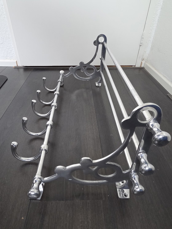 Ce magnifique porte-manteau Art déco, fabriqué en aluminium de haute qualité, apporte une touche d'élégance à votre entrée. Avec sa finition argentée raffinée et ses détails Art déco emblématiques, il dégage un charme intemporel qui s'harmonise aussi bien avec les intérieurs classiques que modernes.