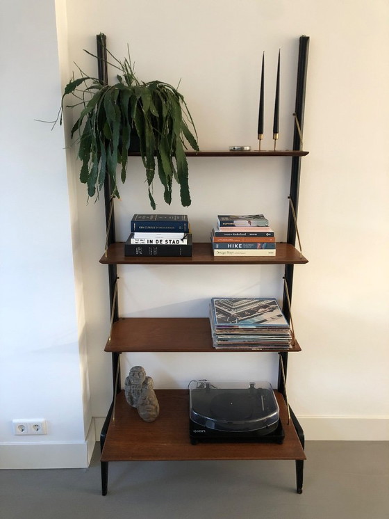 Magnifique étagère murale Teeffelen. Ses dimensions sont les suivantes : hauteur 200 cm, largeur 85 cm et profondeur des montants 34 cm. L’étagère inférieure mesure 45 cm de profondeur. Un véritable atout pour votre intérieur !