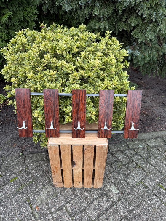 Porte-manteau mural vintage en bois avec crochets métalliques, au design épuré et fonctionnel. Ce porte-manteau mural offre un espace de rangement pratique au quotidien.