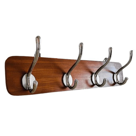 Ravissant porte-manteau vintage danois en teck avec crochets chromés, datant des années 1960.