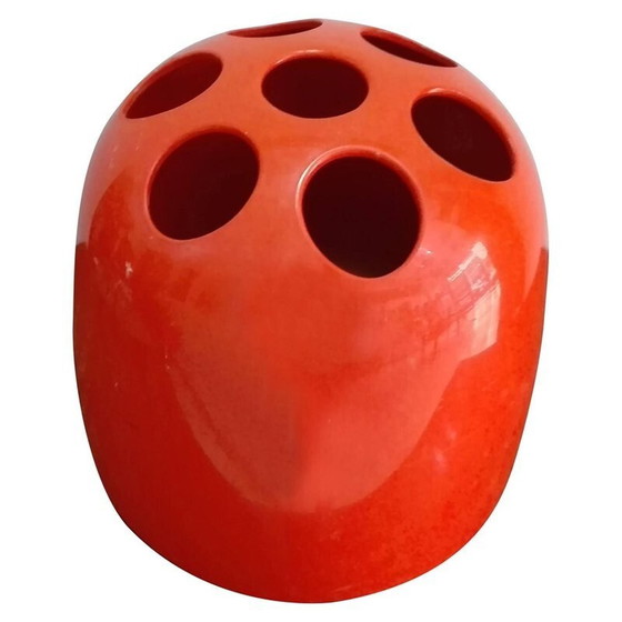 Porte-parapluies en très rare production rouge d'Artemide Milano, Modello Dedalo. Bon état malgré des traces d'usure comme quelques rayures blanches. Diamètre sur le dessus 30 cm et sur le dessous 39 cm.