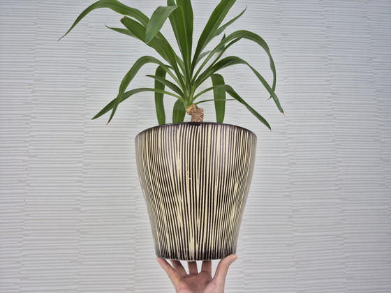 Pot de fleurs XXL en céramique des années 1950. Jardinière vintage « Zèbre ».