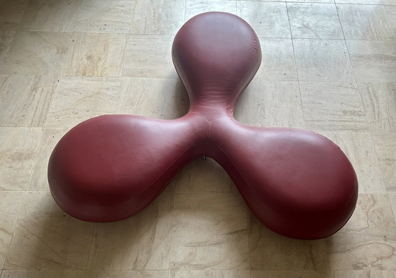 Pouf en cuir bourgogne "Link" par Lowie Vermeersch pour Durlet
