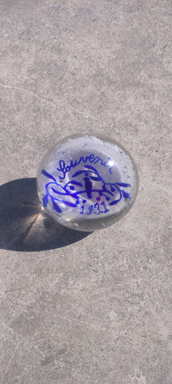 Ce magnifique presse-papier français, datant de 1931, est un souvenir unique d'un mariage de cette époque. Soufflé à la main, il arbore une délicate inscription bleue portant l'inscription « Souvenir » et l'année 1931, ce qui en fait une pièce de collection précieuse.