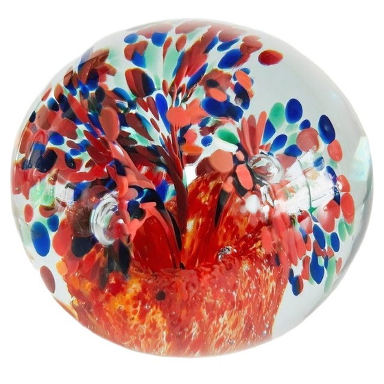 Grand presse-papier sphérique vintage orné de confettis colorés et de motifs floraux.