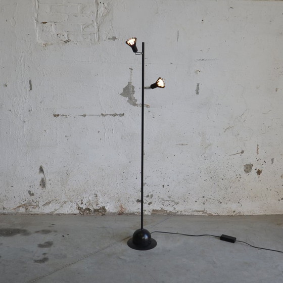 Ce lampadaire élégant des années 90 apporte une touche rétro à n'importe quelle pièce. Grâce à ses deux spots orientables, il offre un éclairage polyvalent, idéal pour un usage aussi bien fonctionnel que pour créer une ambiance chaleureuse. Fabriqué en métal robuste et doté d'une élégante finition noire, il s'intègre harmonieusement à tous les intérieurs.