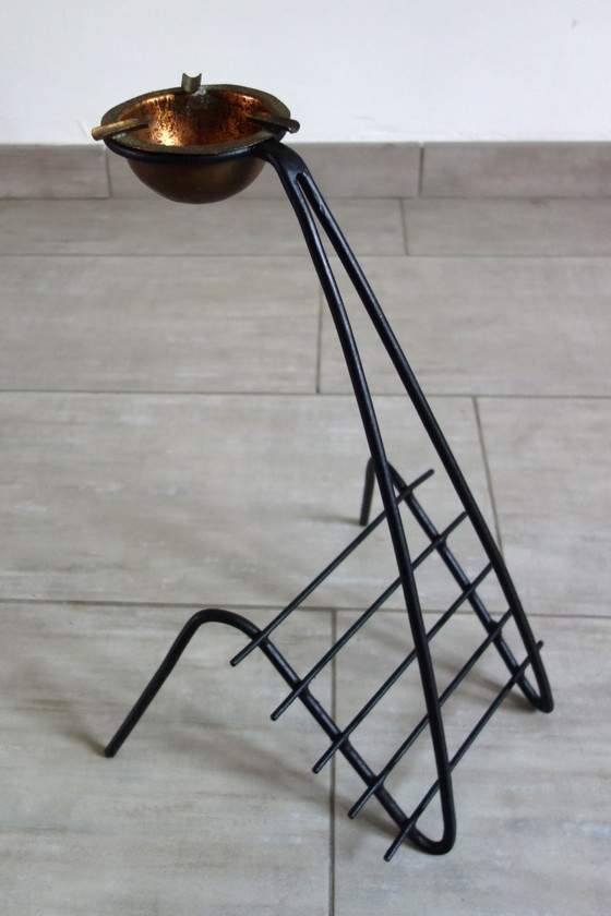 Rare cendrier porte revues en métal et cuivre années 50 France