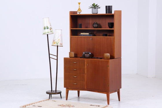 Rare Étagère Vintage Années 60 | Mid Century Armoire à étagères Tiroirs Rétro Bois Rangement #07-69