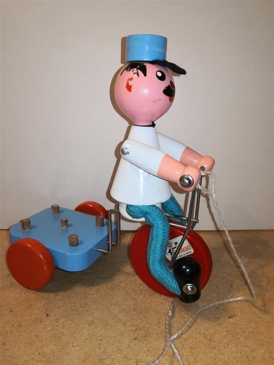 Rare Jouet Ancien Vilac En Bois Rétro Vintage Livreur De Lait Sur Tricycle / 60's